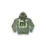 Abstract Art collage hand painted Mezaneen Originals® olive green hoodie