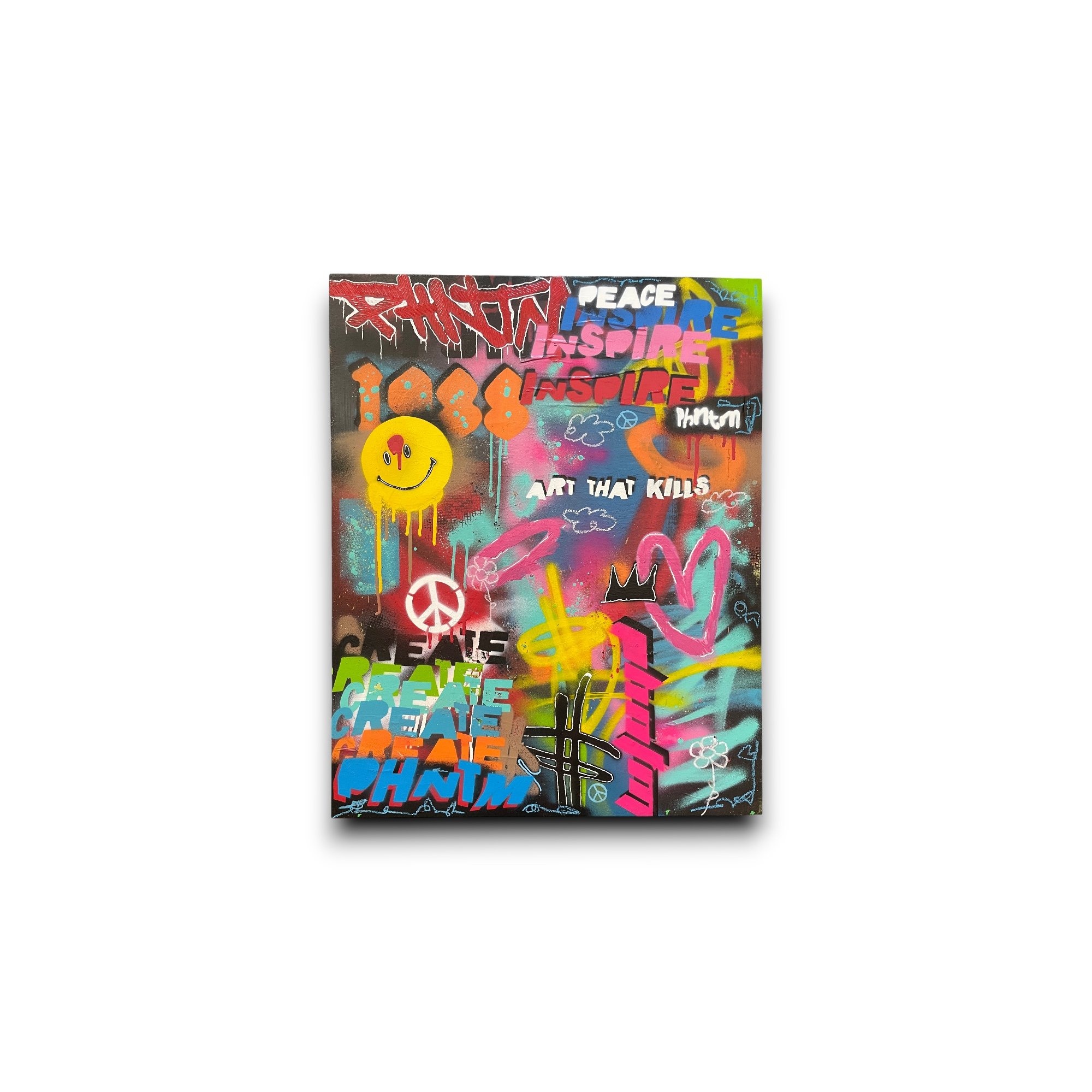 - Medium: Acrylic and spray paint on canvas