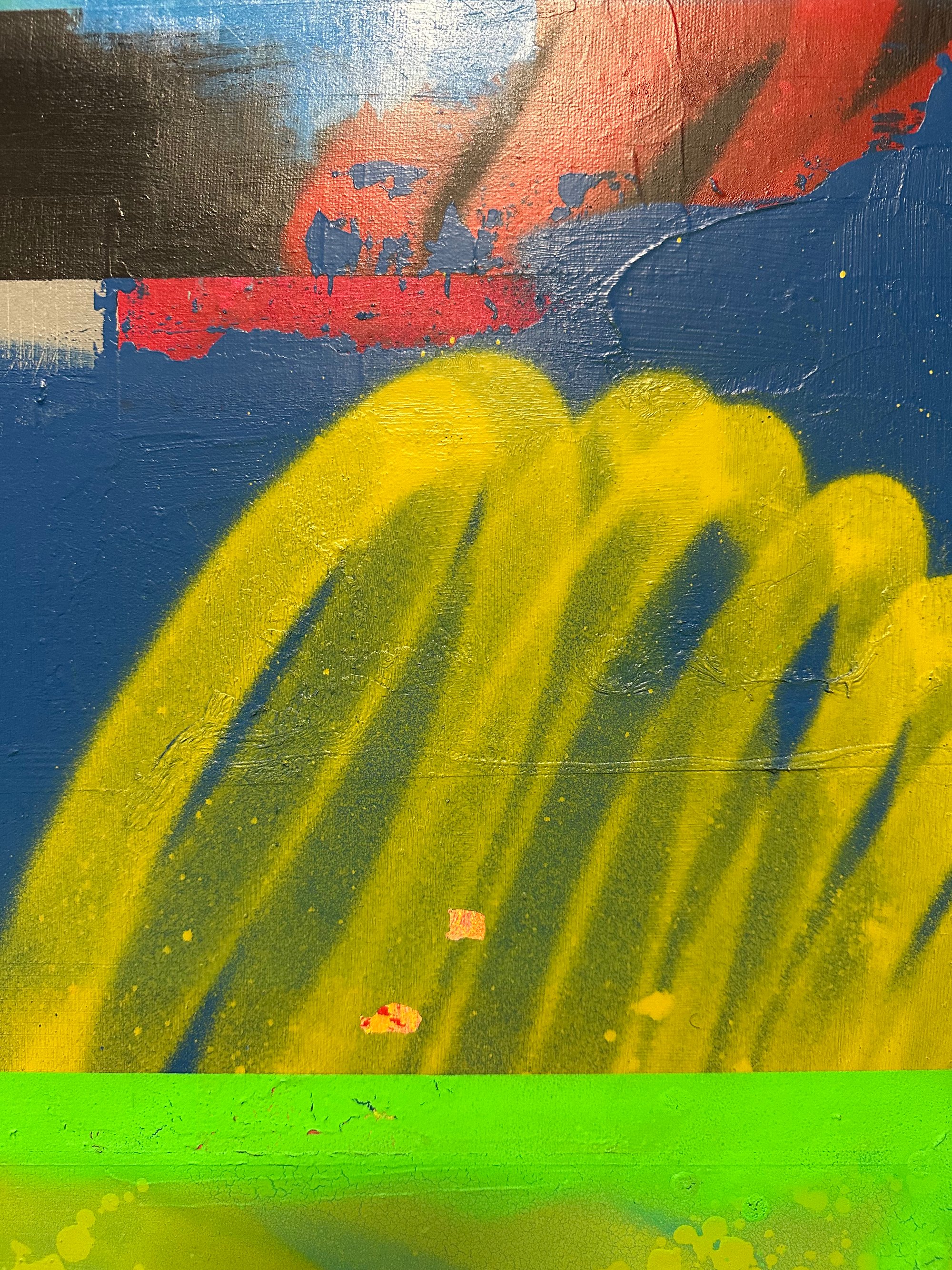 - Medium: Acrylic and spray paint on canvas