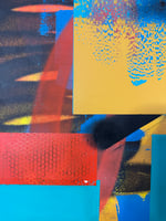 Electric Dus is an original abstract painting that blends geometric design with street-inspired texture. Bold shapes and layered colors collide in a composition that feels both structured and spontaneous. Every mark, fade, and overlay adds to the rhythm of controlled chaos — making this piece a striking statement for any space.