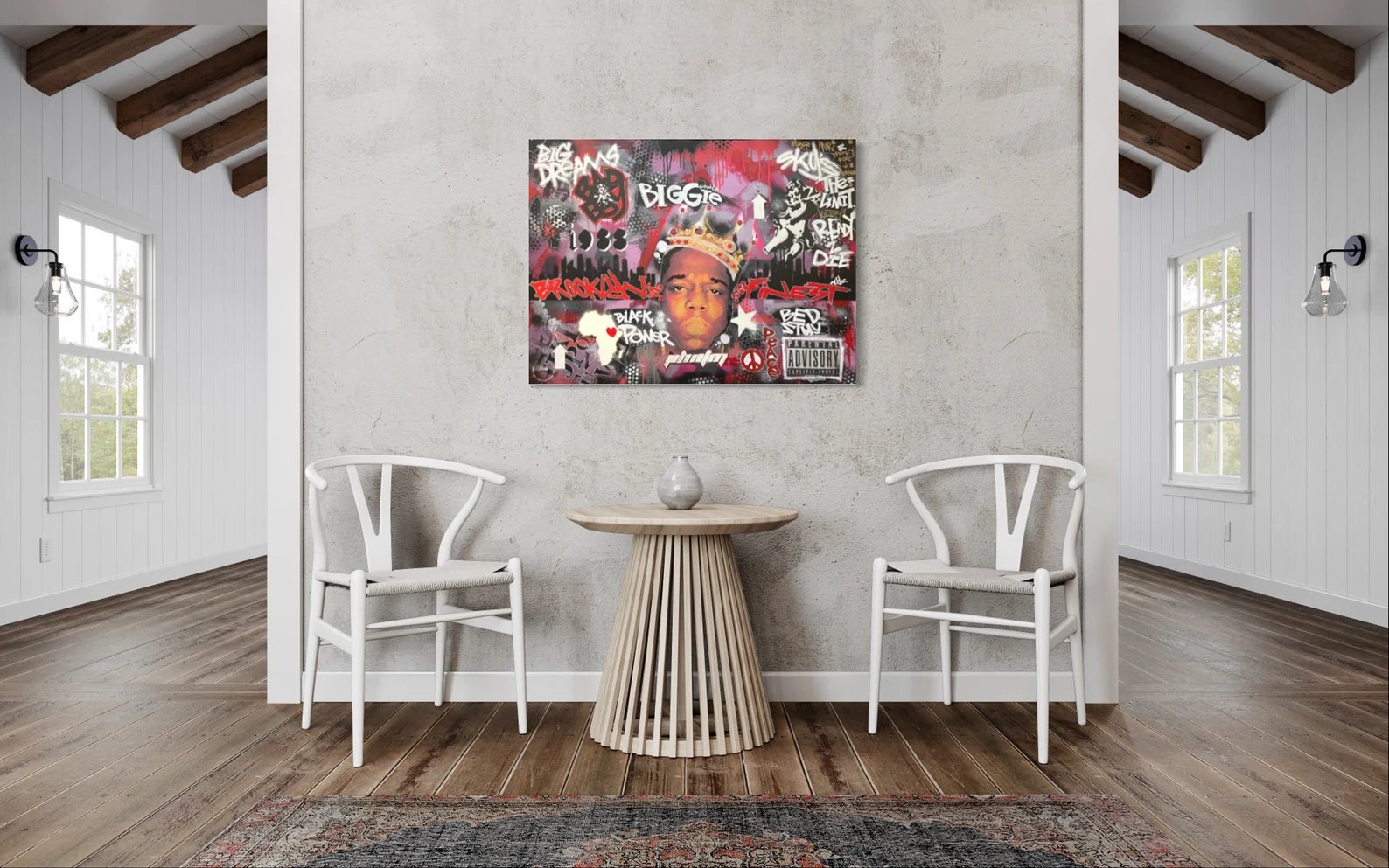 Skys the Limit is an original abstract painting that blends geometric design with street-inspired texture. Bold shapes and layered colors collide in a composition that feels both structured and spontaneous. Every mark, fade, and overlay adds to the rhythm of controlled chaos — making this piece a striking statement for any space.
